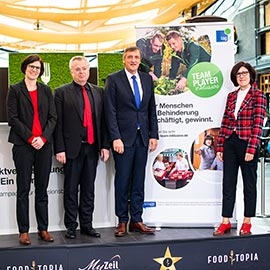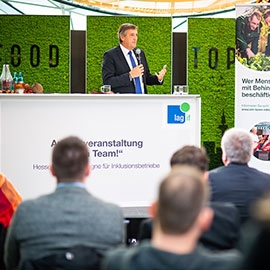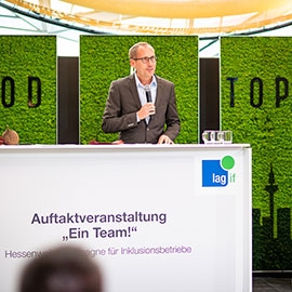 „Wir wollen eine inklusive Gesellschaft“, betonte Hessens Sozial- und Integrationsminister Kai Klose auf der Auftaktveranstaltung für die Kampagne „Ein Team!“. Mit dieser Kampagne will die Landesarbeitsgemeinschaft Inklusionsfirmen, LAG If Hessen, zeigen, dass Menschen mit Behinderung ein selbstverständlicher Teil der Arbeitsgesellschaft sind. Sie wirbt bei Unternehmen dafür, ein Inklusionsbetrieb zu werden oder eine Inklusionsabteilung aufzubauen. Martin Berg, Vorsitzender der LAG Inklusionsfirmen Hessen e. V., machte zum Kampagnenstart deutlich: „Wir wollen die Zahl der inklusiven Unternehmen spürbar erhöhen. Unsere Kampagne zeigt exemplarisch Unternehmen, in denen die Zusammenarbeit mit Menschen mit Beeinträchtigung hervorragend funktioniert.“